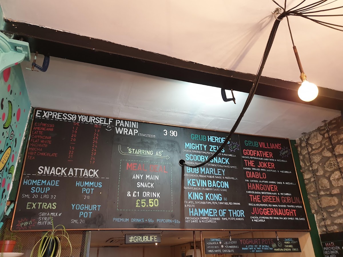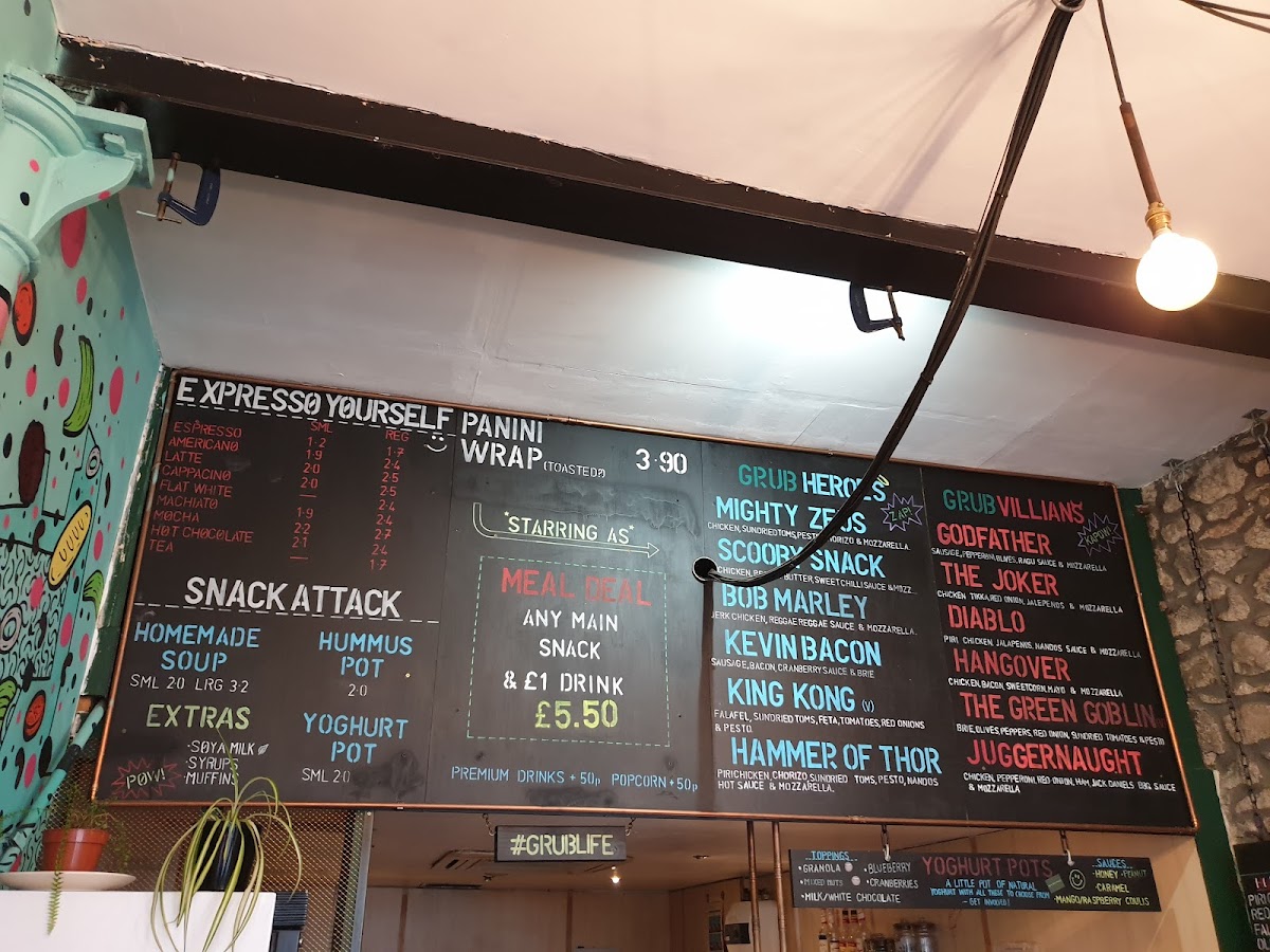 Welcome to Grub Fresh Food, a delightful cafe located at 59 Schoolhill, Aberdeen. Known for its vibrant menu, Grub Fresh Food focuses on creativity and flavor. The standout offerings include the Expresso Yourself Panini, featuring a range of delicious combinations, alongside legendary creations such as Mighty Zeus and Hammer of Thor. For those drawn to unique flavors, the Grub Villains lineup, including the Godfather and The Joker, promises an exciting culinary adventure.